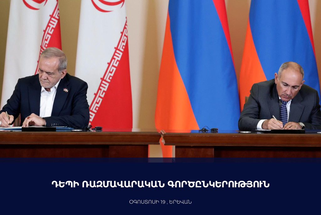 Իրանի նախագահ Մասուդ Փեզեշքիանի՝ Հայաստան պաշտոնական այցի շրջանակներում պայմանավորվածություն է ձեռք բերվել Հայաստան-Իրան ռազմավարական բնույթի հարաբերությունները բարձրացնել ռազմավարական մակարդակի: