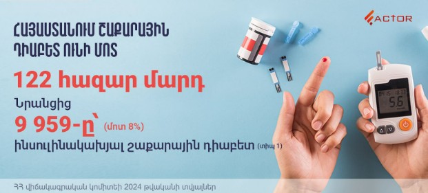 ՀՀ վիճակագրական կոմիտեի 2024 թվականի տվյալների համաձայն՝ Հայաստանում շաքարային դիաբետ ունի մոտ 122 հազար մարդ։ Նրանցից 9 959-ը՝ ինսուլինակախյալ շաքարային դիաբետ (տիպ 1)։