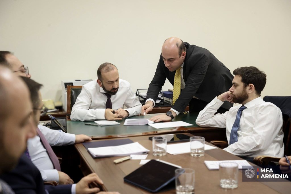 2025 թվականի աշխատանքային վերջին քննարկումը նախարար Միրզոյանի մոտ։ Քննարկմանը մասնակցել են ԱԳՆ գլխավոր քարտուղար Դավիթ Կարապետյանը, նախարարի տեղակալներ՝ Վահան Կոստանյանը, Մնացական Սաֆարյանը, Ռոբերտ Աբիսողոմոնյանը, նախարարի խորհրդական Վահան Հունանյանը, Հայկ Դարբինյանը, մամուլի քարտուղար Անի Բադալյանը։