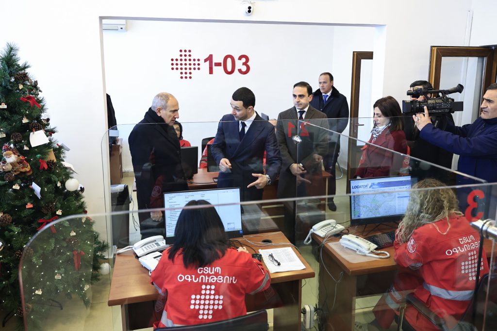 Այցի շրջանակում Նիկոլ Փաշինյանին ներկայացվել է նաև հեռախոսազանգերի կենտրոնի գործունեությունը: Նշվել է, որ իրականացվել են թվայնացմանն ուղղված աշխատանքներ: Մասնավորապես՝ կանչերի գրանցումն իրականացվում է պլանշետների միջոցով, ներդրվել է նույնականացման համակարգ և իրականացվում է բուժառուների էլեկտրոնային գրանցում: «1-03» ծառայության արդիականացման շրջանակում զանգերի ձայնագրման և մոնիտորինգի շնորհիվ բաց թողնված զանգերի թիվը հասցվել է զրոյի: Ընդգծվել է, որ համակարգը սպասարկում է ոչ միայն Երևանի տարածքի, այլև ամբողջ Հայաստանի Հանրապետության «1-03» համարին մուտքագրված զանգերը՝ ապահովելով դրանց կենտրոնացված կոորդինացումը: