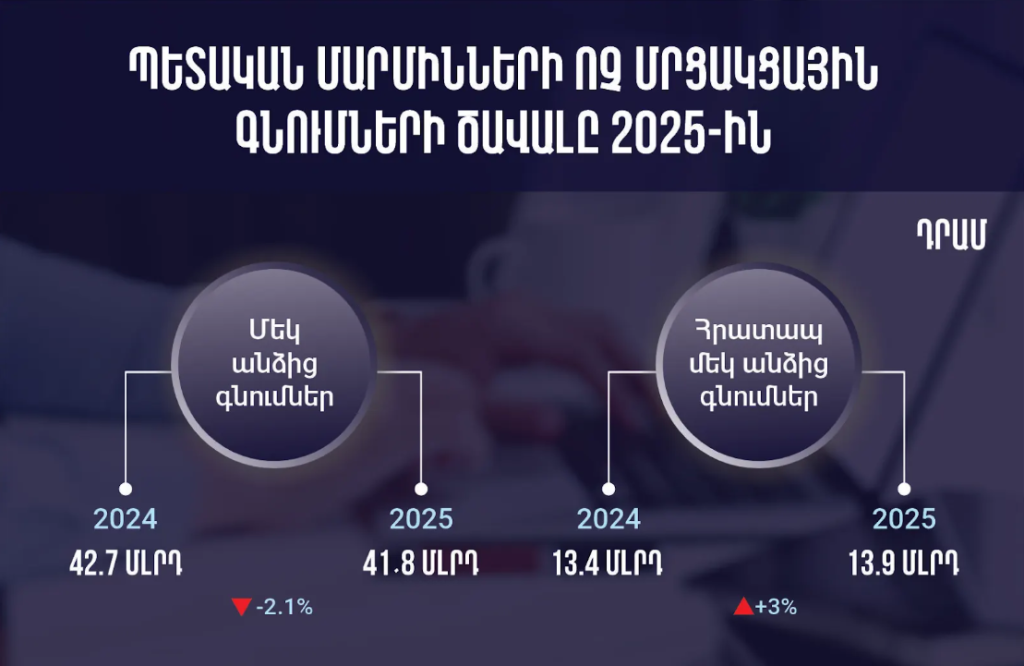 2025 թվականին Հայաստանի պետական մարմինները ոչ մրցակցային՝ մեկ անձից գնման ընթացակարգով 2%-ով պակաս գնում են իրականացրել, քան 2024-ին։ Պետական գնումների էլեկտրոնային Armeps համակարգի տվյալների ուսումնասիրությամբ Factor.am-ը պարզել է, որ ի տարբերություն մեկ անձից գնումների, հրատապ մեկ անձից գնումների ծավալն անցած տարի ավելացել է 3 %-ով։
