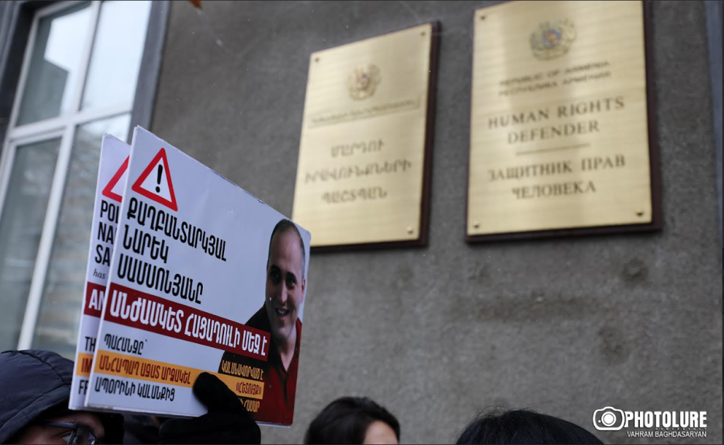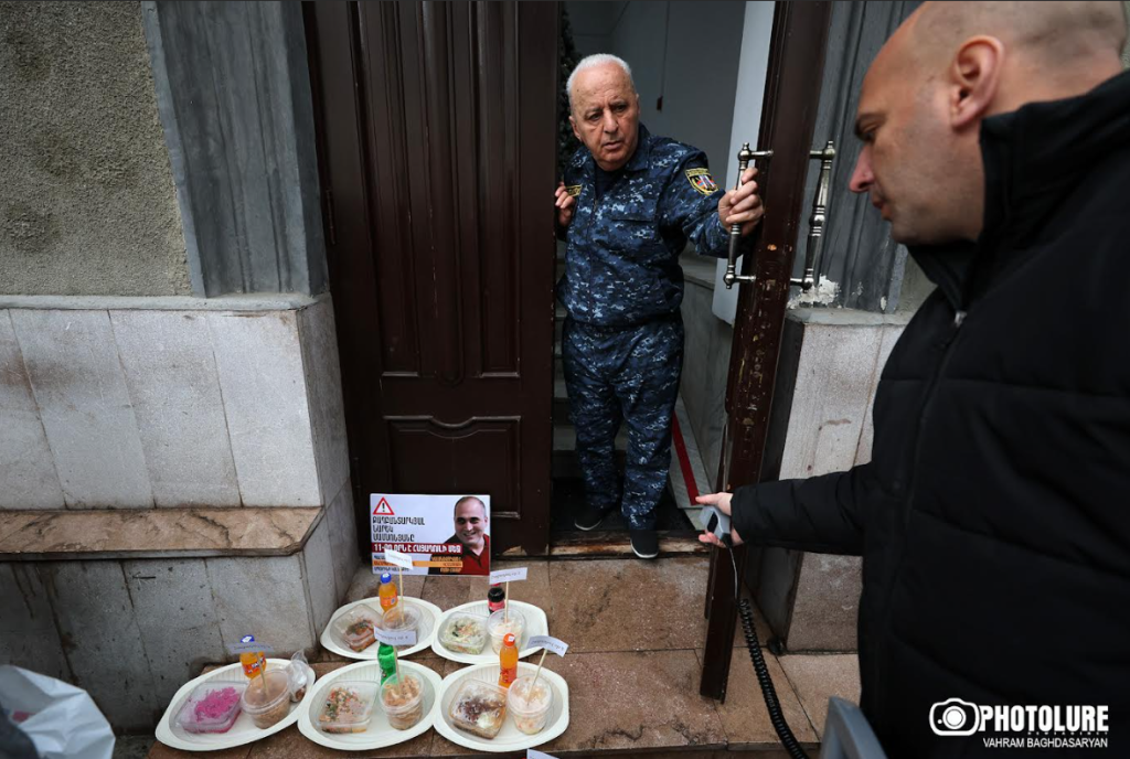 19.01.2026 | 13:0311 օր հացադուլի մեջ գտնվող «Իմնեմնիմի» փոդքասթի հաղորդավար Նարեկ Սամսոնյանի ընկերներն ու աջակիցներն այսօր բողոքի ակցիա իրականացրին Մարդու իրավունքների պաշտպանի գրասենյակի առջև: Նրանք 11 օրվա սնունդ էին բերել ՄԻՊ գրասենյակ, որը մուտքի աստիճաններից հավաքեց ու տոպրակի մեջ լցրեց գրասենյակի աշխատակիցը՝ պատճառաբանելով, որ խոչընդոտվում է քաղաքացիների մուտքն ու ելքը։