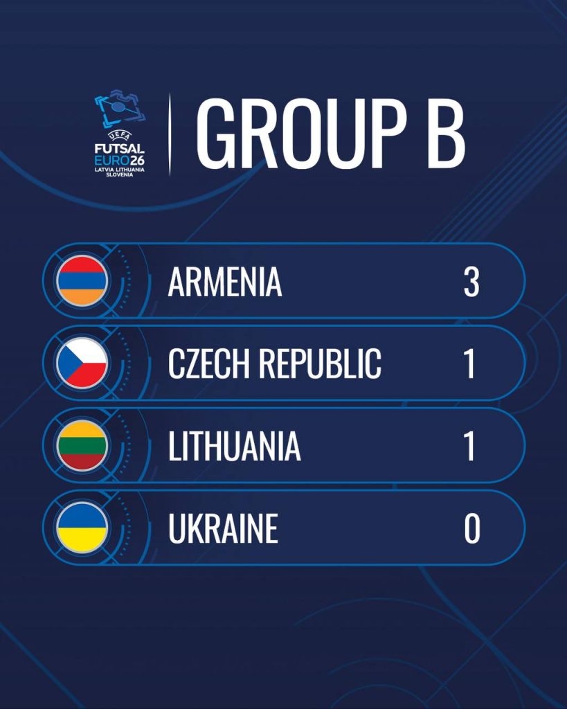 Եվրո-2026-ում հայ ֆուտզալիստները հաջորդ հանդիպումը կանցկացնեն hունվարի 25-ին՝ Երևանի ժամանակով 16։00-ից մրցելով Չեխիայի հավաքականի հետ։ Երրորդ տուրում hունվարի 28-ին մրցակիցը կլինի Լիտվայի հավաքականը։ Խմբային փուլում Հայաստանի հավաքականի բոլոր խաղերը կկայանան Կաունասի «Ժալգիրիս Արենա» մարզապալատում։