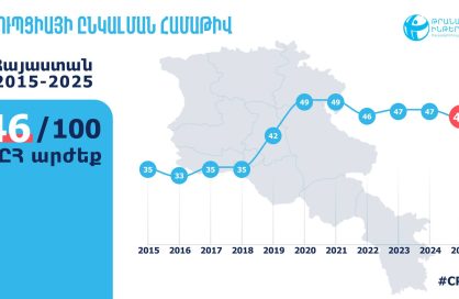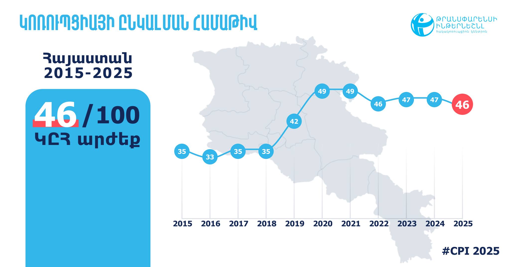 Հայաստանի՝ Կոռուպցիայի ընկալման համաթվի 2025թ. արժեքը նախորդ տարվա համեմատ նվազել է մեկ միավորով․ Transparency International