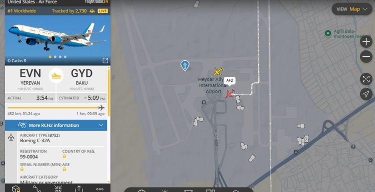 ԱՄՆ փոխնախագահ Ջեյմս Դի Վենսի ինքնաթիռը քիչ առաջ վայրէջք կատարեց Բաքվի օդանավակայանում։ Այս մասին Factor.am-ը տեղեկանում է միջազգային թռիչքների մոնիթորինգի կայքից։ Վենսը փետրվարի 9-ին պաշտոնական այցով ժամանել էր ՀՀ, հանդիպել ՀՀ վարչապետին։ Երևանից մեկնելիս Վենսը լրագրողների հետ ճեպազրույցում հայտնել է, որ Բաքվում նաև գերիների հարցն է բարձրաձայնելու։ «Դա, անկասկած, կքննարկվի։ Մենք շատ լավ հարաբերություններ ունենք … Continue reading Վենսը ժամանեց Բաքու․ ՏԵՍԱՆՅՈՒԹ