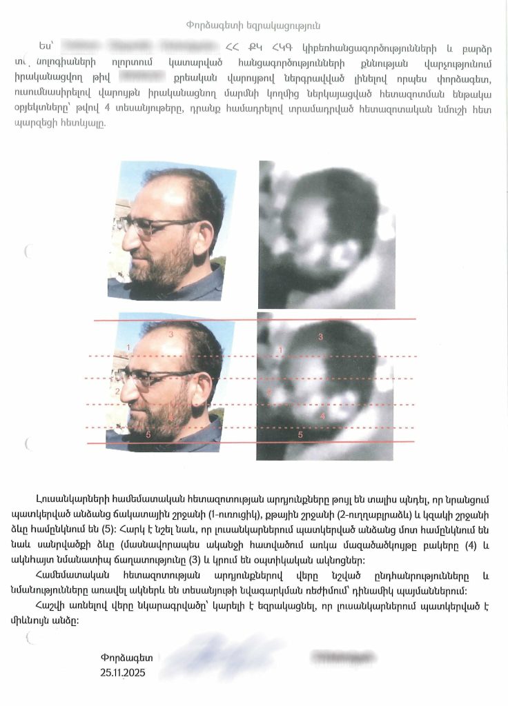 Հաշվի առնելով վերը նկարագրվածը՝ կարելի է եզրակացնել, որ լուսանկարներում պատկերված է միևնույն անձը»։