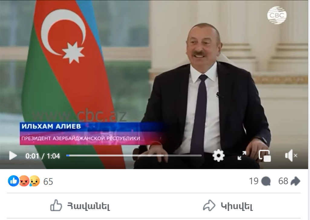 Այսպիսով, համացանցում ակտիվորեն տարածվող տեսանյութը, որը Իլհամ Ալիևի հարցազրույցից մի հատված է, նոր չէ։ Այն 2022 թ․ հունվարի 12-ին ադրբեջանական լրատվամիջոցներին տրված հարցազրույցից է, սակայն բազմաթիվ օգտատերերի կողմից ներկայացվում և շահարկվում է իբրև նոր տեղի ունեցած իրադարձություն։