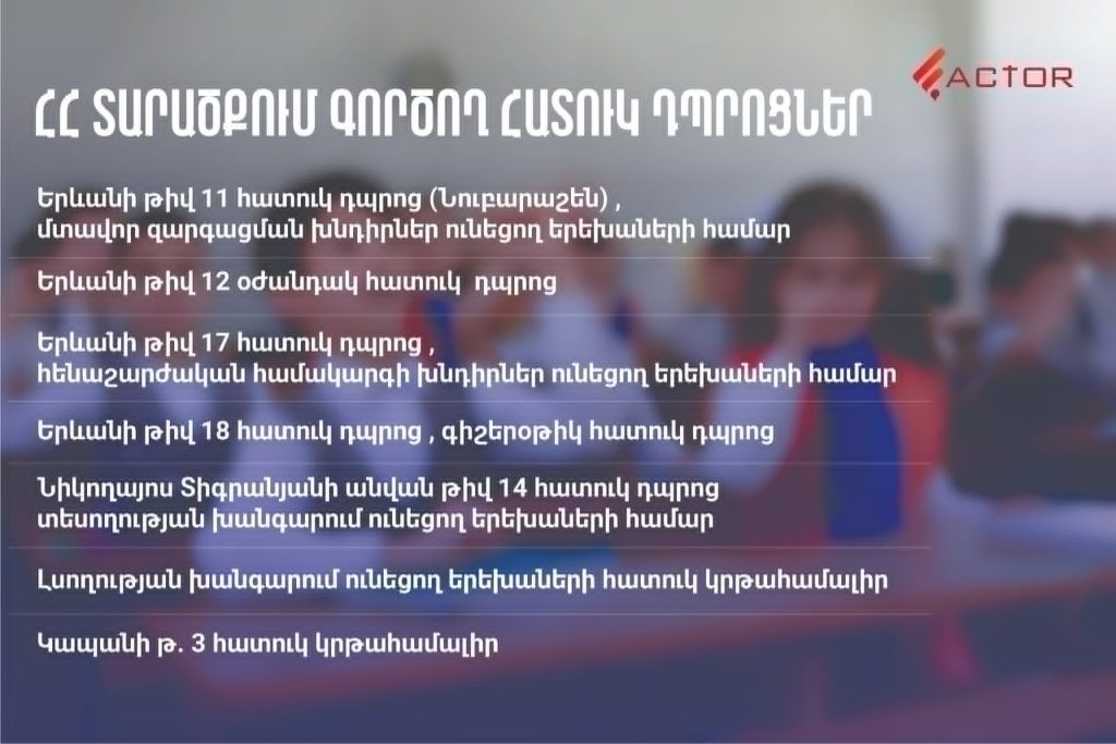 2022 թ.-ին «Հանրակրթության մասին» օրենքում փոփոխությունների և լրացումների համաձայն՝ «հատուկ դպրոց» հասկացությունը վերափոխվել է հատուկ դպրոց-ռեսուրս կենտրոնի, որը կրթական ծրագրեր իրականացնելուց բացի՝ կանցկացնի մանկավարժների վերապատրաստում, խորհրդատվություն, դիցուք՝ վատ լսող երեխաների դեպքում՝ ժեստերի լեզվի ուսուցում, խելամիտ հարմարեցումներ և այլն: