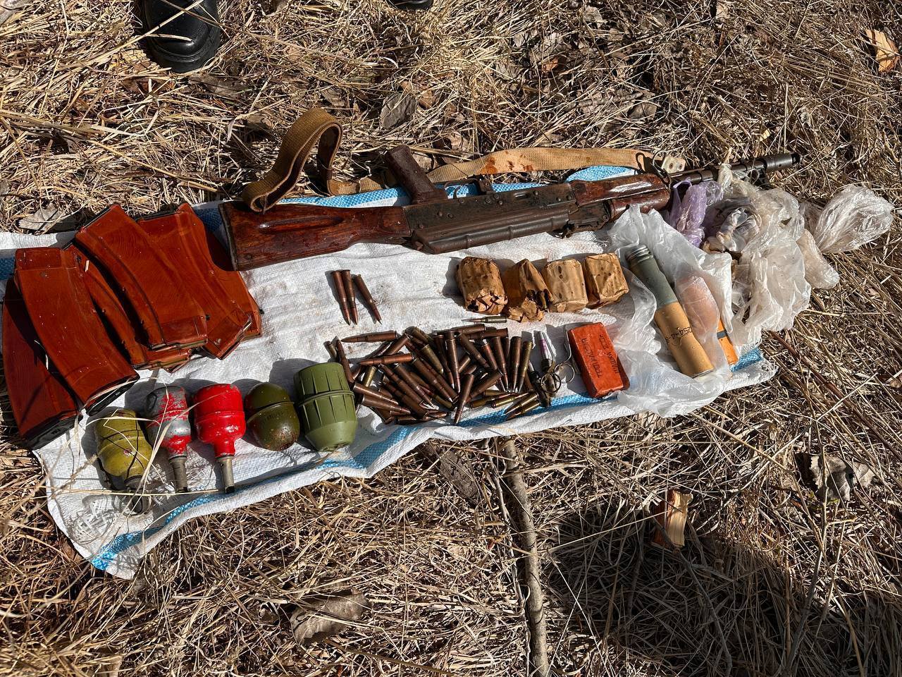 Համատեղ միջոցառման արդյունքում պարկի մեջ հայտնաբերվել են ԱԿ-74 տեսակի 1 ինքնաձիգ, 8 փամփշտատուփ, որից 7-ը լիցքավորված է եղել 5․45 տրամաչափի 210 փամփուշտներով, 176 տարբեր տրամաչափի այլ փամփուշտներ, 5 նռնակ, 2 նռնակի պայթուցիչ, 2 գլանակ և 1 տրոտիլ տեսակի պայթուցիչ։