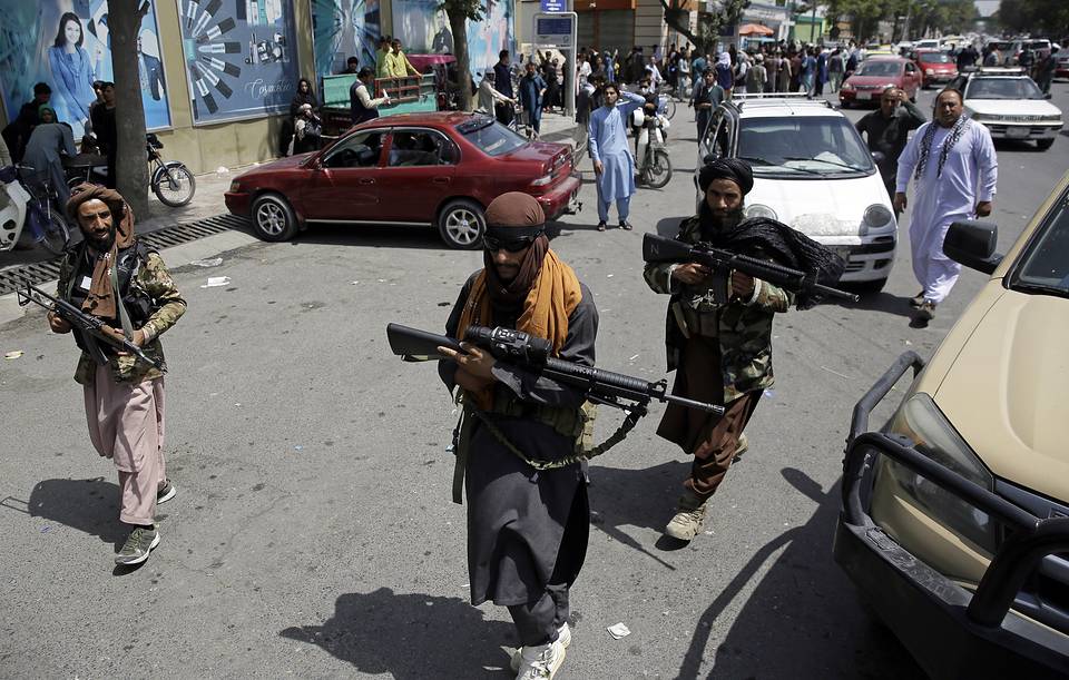 Taliban fighters patrol in Kabul, Afghanistan, Thursday, Aug. 19, 2021. The Taliban celebrated Afghanistan’s Independence Day on Thursday by declaring they beat the United States, but challenges to their rule ranging from running a country severely short on cash and bureaucrats to potentially facing an armed opposition began to emerge. (AP Photo/Rahmat Gul)