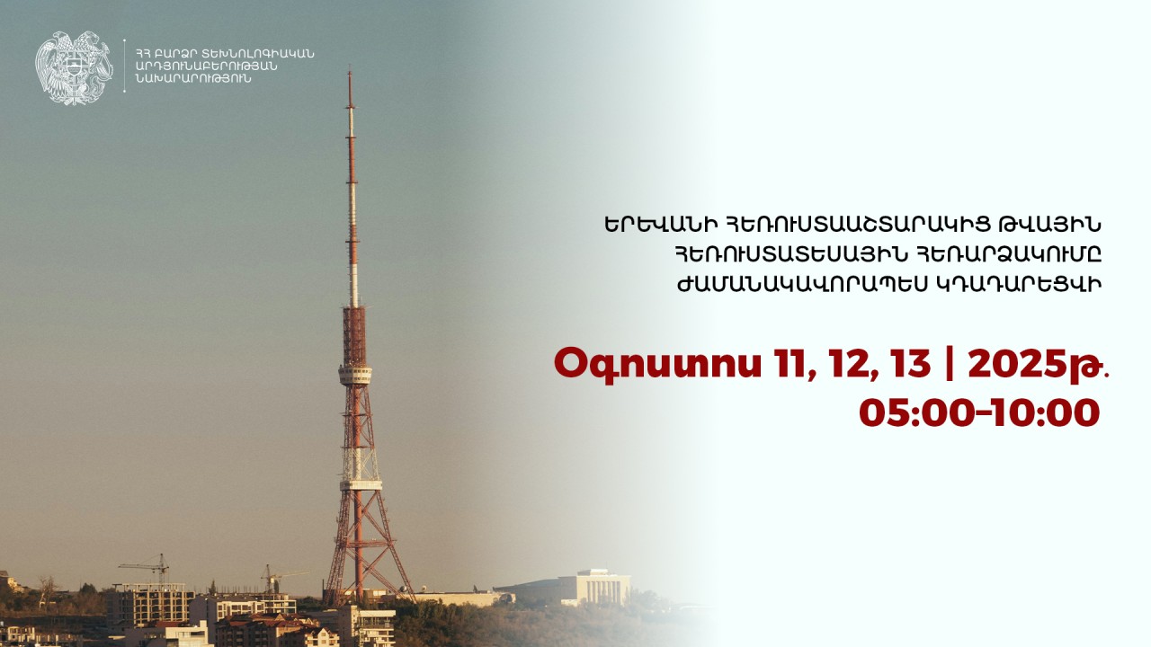 Երևանի հեռուստաաշտարակից թվային հեռուստատեսային հեռարձակումը ժամանակավորապես կդադարեցվի