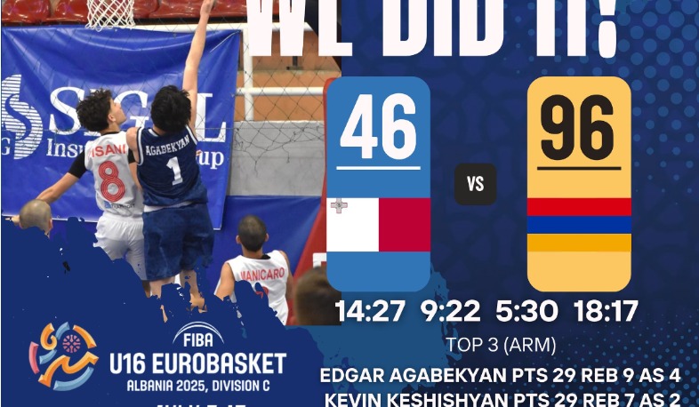Բասկետբոլի Հայաստանի Մ16 հավաքականը հաղթել է Մալթայի հավաքականին