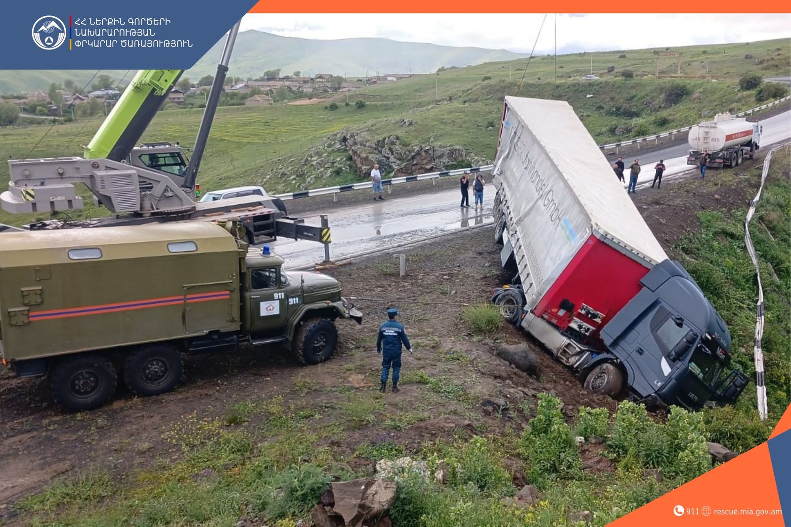 Սիսիան-Սպանդարյան ճանապարհին բեռնատարը դուրս է եկել երթևեկելի հատվածից և կախվել դեպի ձորակը