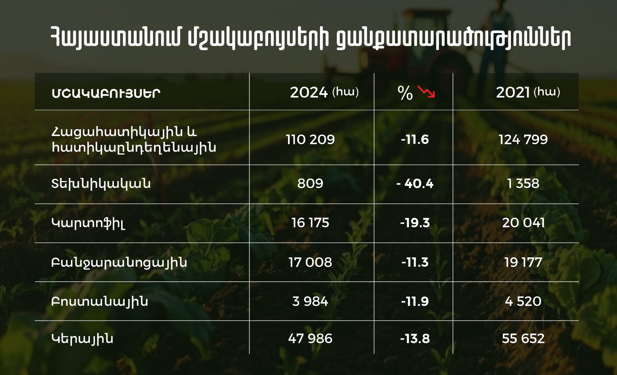 Հայաստանում մշակաբույսերի ցանքատարածությունները կրճատվել են