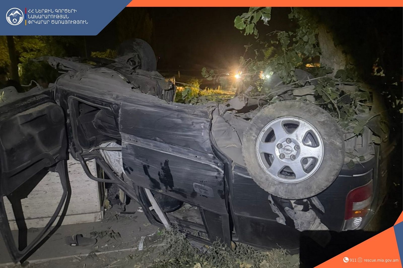Մրգավանում մեքենան բախվել է ծառին, գերեզմանաքարին և գլխիվայր շրջվել․ կան տուժածներ