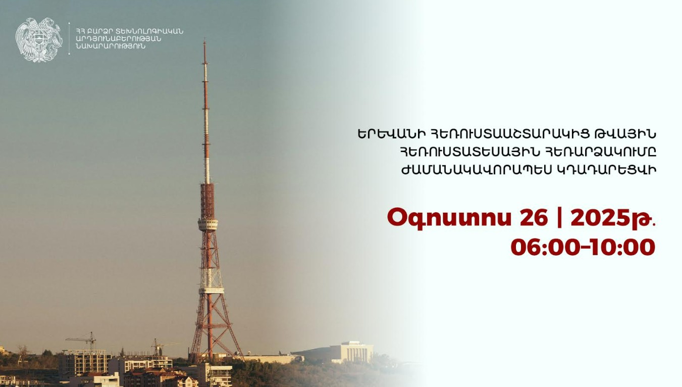 Երևանի հեռուստաաշտարակից թվային հեռուստատեսային հեռարձակումը ժամանակավորապես կդադարեցվի