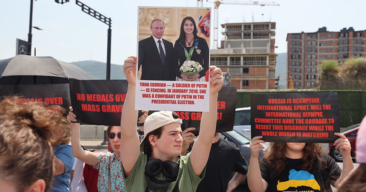 Թբիլիսիում բողոքի ցույց է անցկացվել աշխարհի առաջնությանը ռուս սուսերամարտիկների մասնակցության դեմ