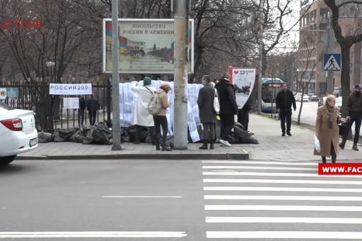 Բողոքի ակցիա՝ ՌԴ դեսպանատան շենքի մոտ․ լրանում է Ուկրաինայի վրա հարձակման 4-րդ տարելիցը․ ՈՒՂԻՂ
