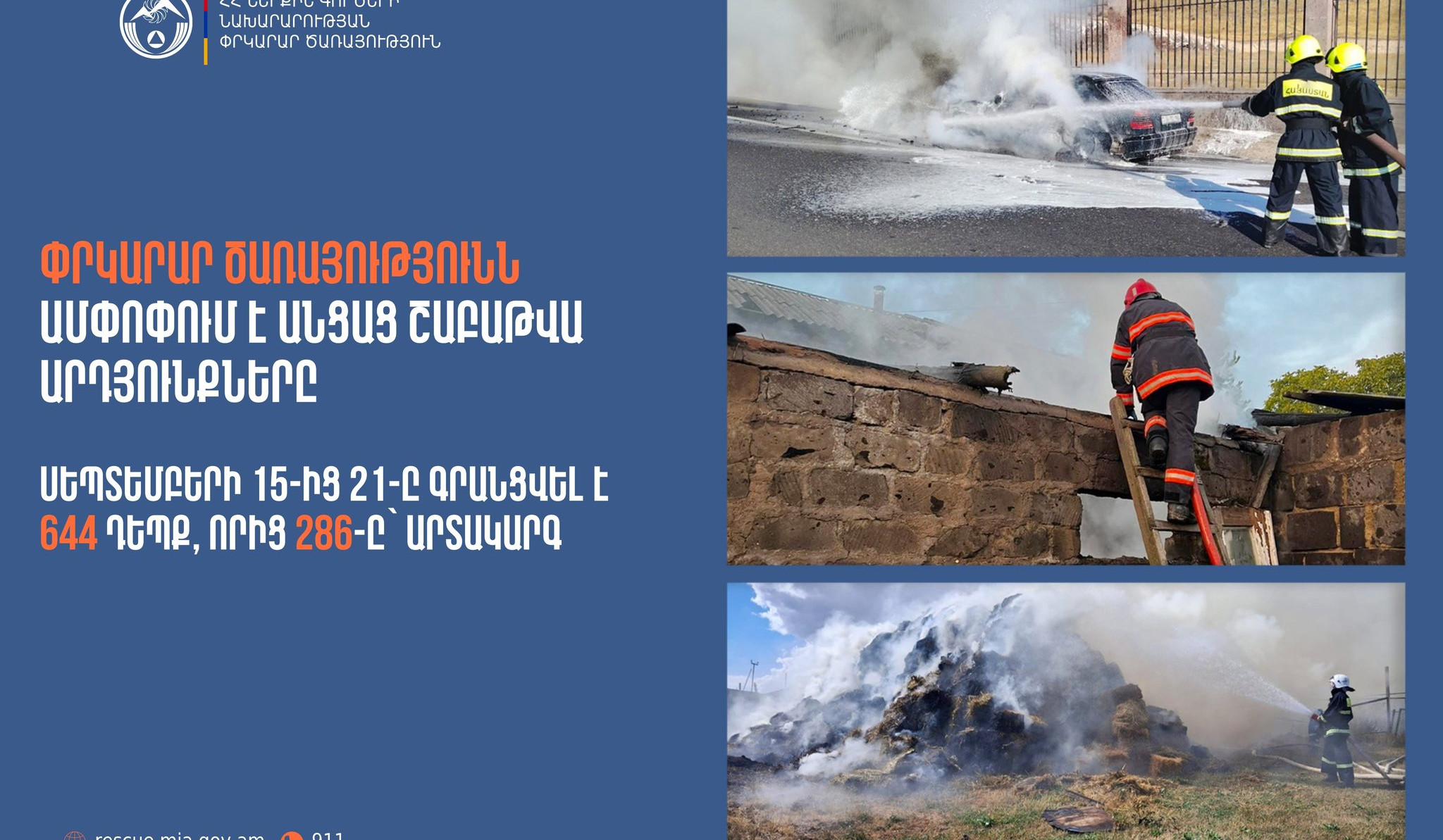 Գրանցվել է 644 դեպք, որից 286-ը՝ արտակարգ. ՆԳՆ ՓԾ-ն ամփոփել է անցած շաբաթը