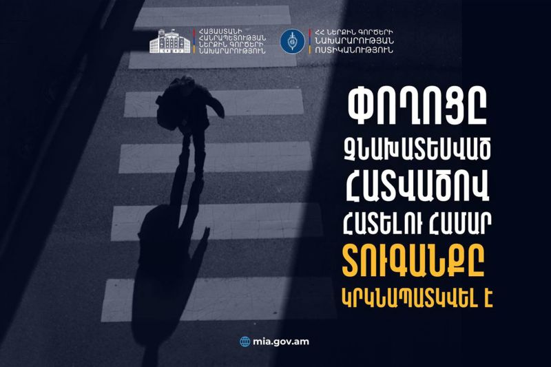 10 000 դրամ․ հետիոտնի կողմից չնախատեսված հատվածով փողոցը հատելու տուգանքը կրկնապատկվել է