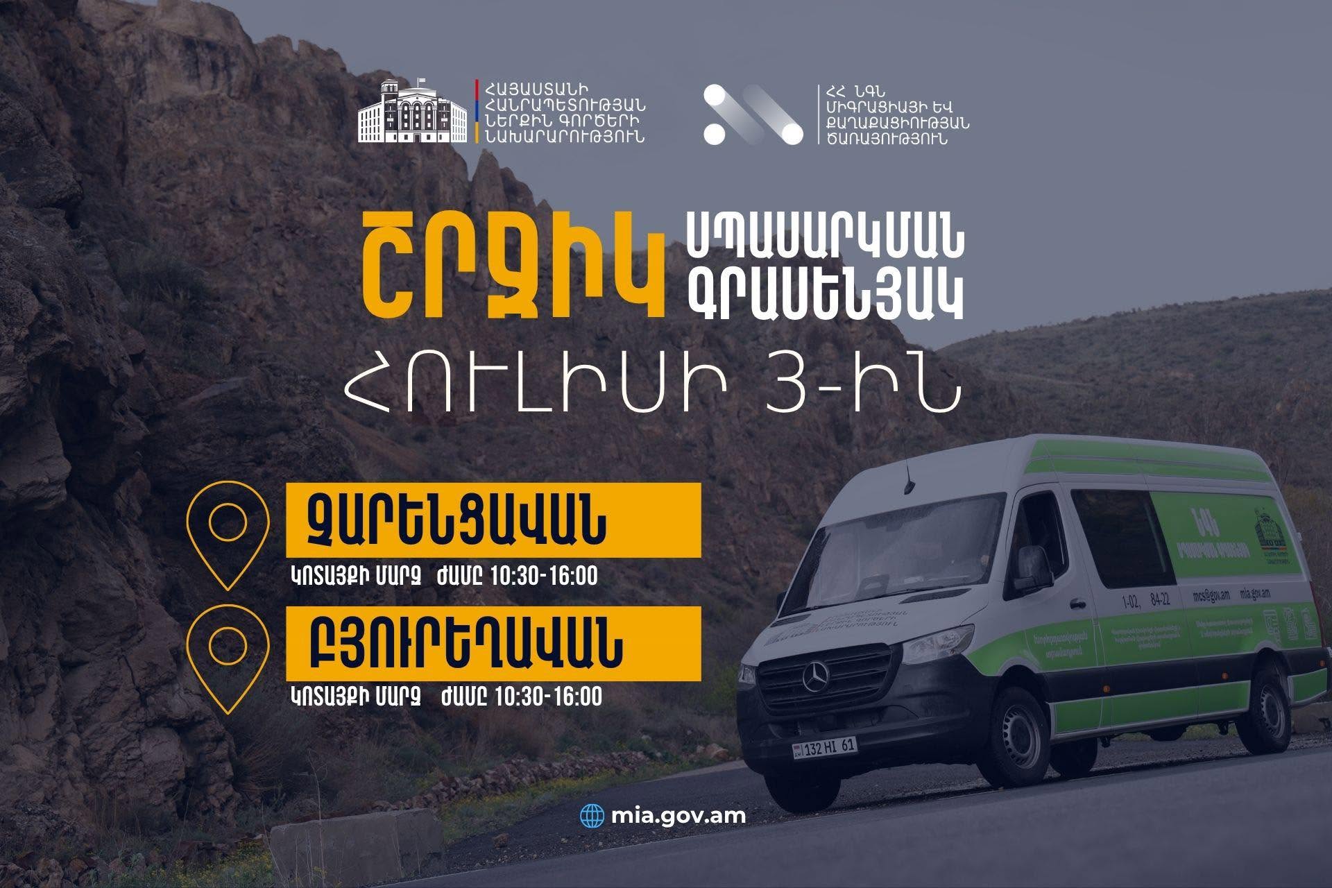 ՆԳՆ շրջիկ սպասարկման գրասենյակները ծառայություններ կմատուցեն Կոտայքի մարզում