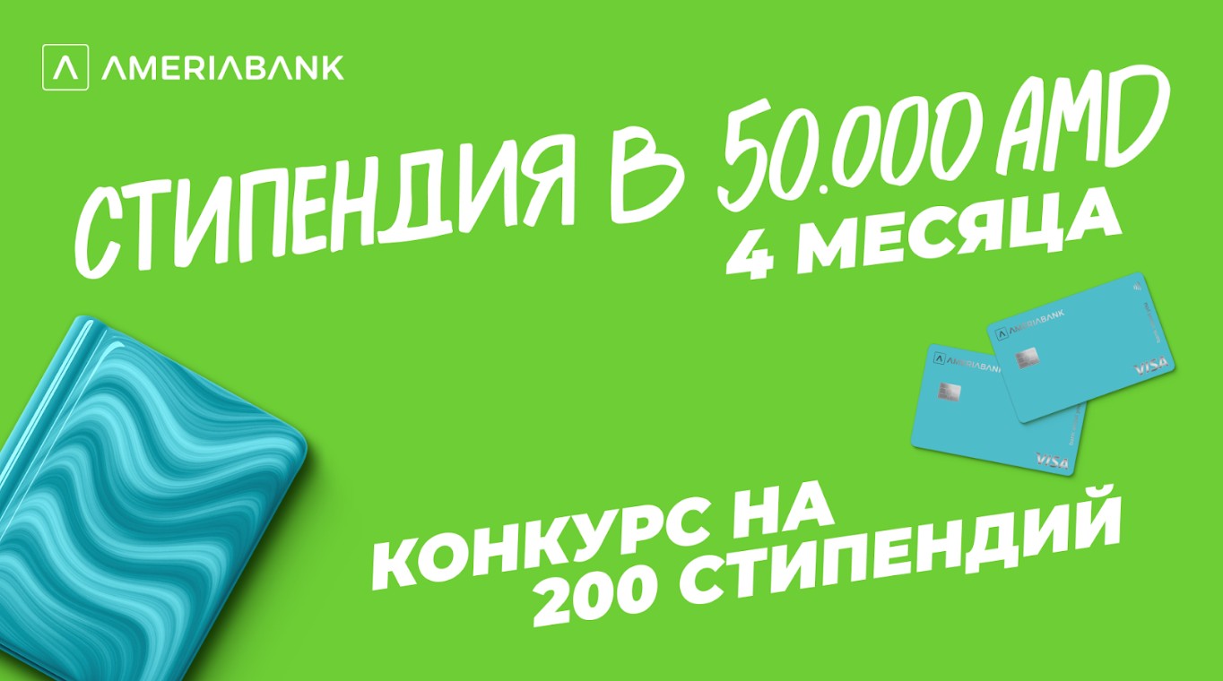 Америабанк второй год подряд проводит конкурс на получение стипендии под названием «Моя Армения, мое будущее», предназначенный для студентов всех государственных и частных ВУЗ-ов Армении. Целью конкурса является выявление и поощрение активных студентов, обладающих гибким и ярким складом ума, лучшие 200 из которых будут получать ежемесячную стипендию в размере 50,000 драмов в течение 4-х месяцев второго семестра учебного года 2025-2026.